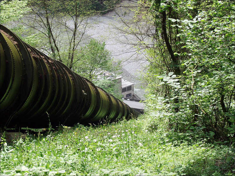 La galleria è collegata alla centrale con una condotta forzata metallica lunga 365 m, con diametro variabile da 2,00 a 2,6 m.